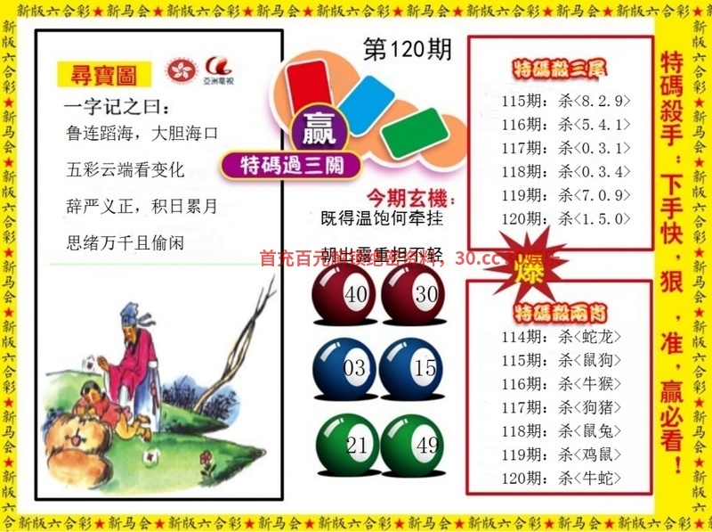 | 121期:必中六尾开:兔15准 | |